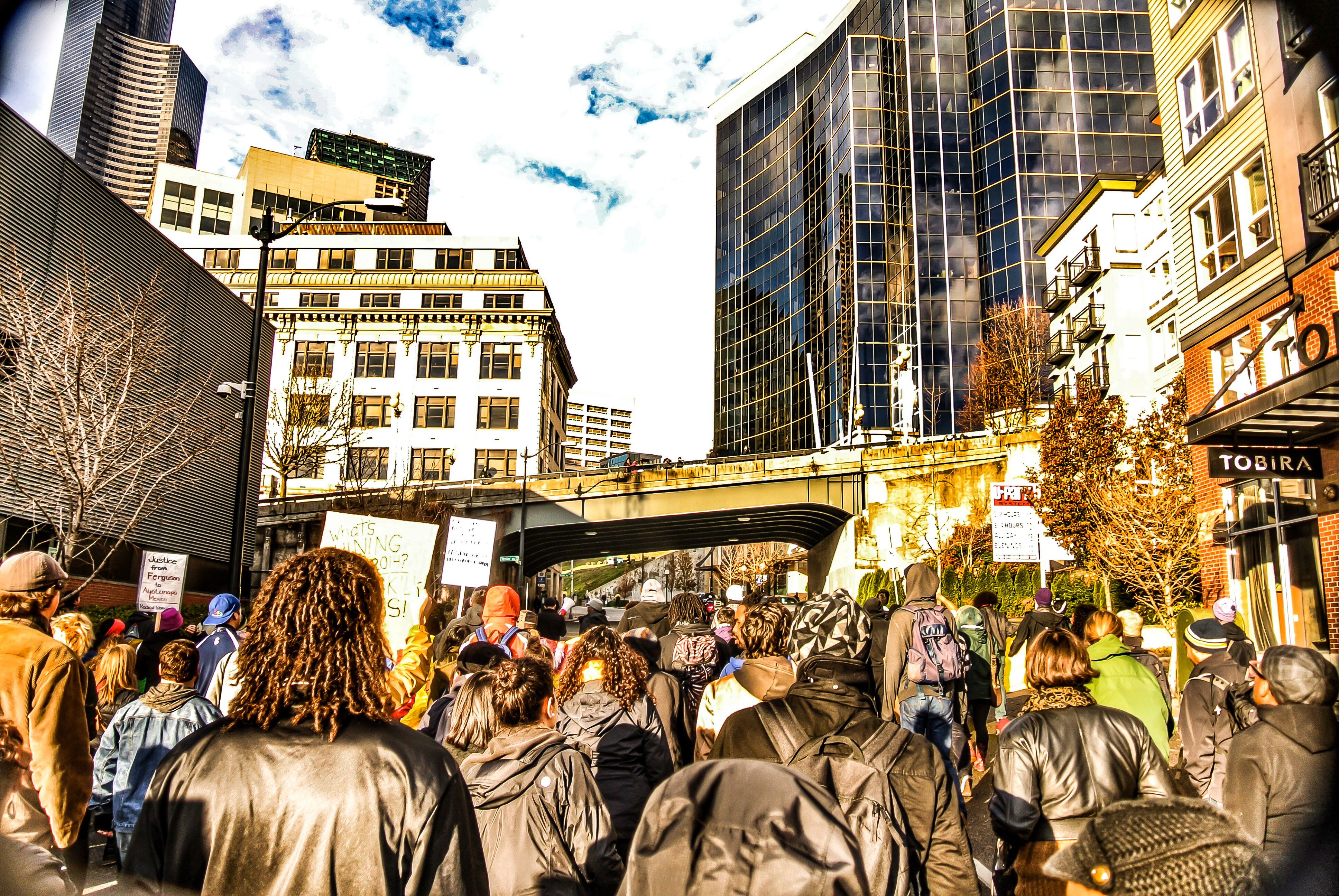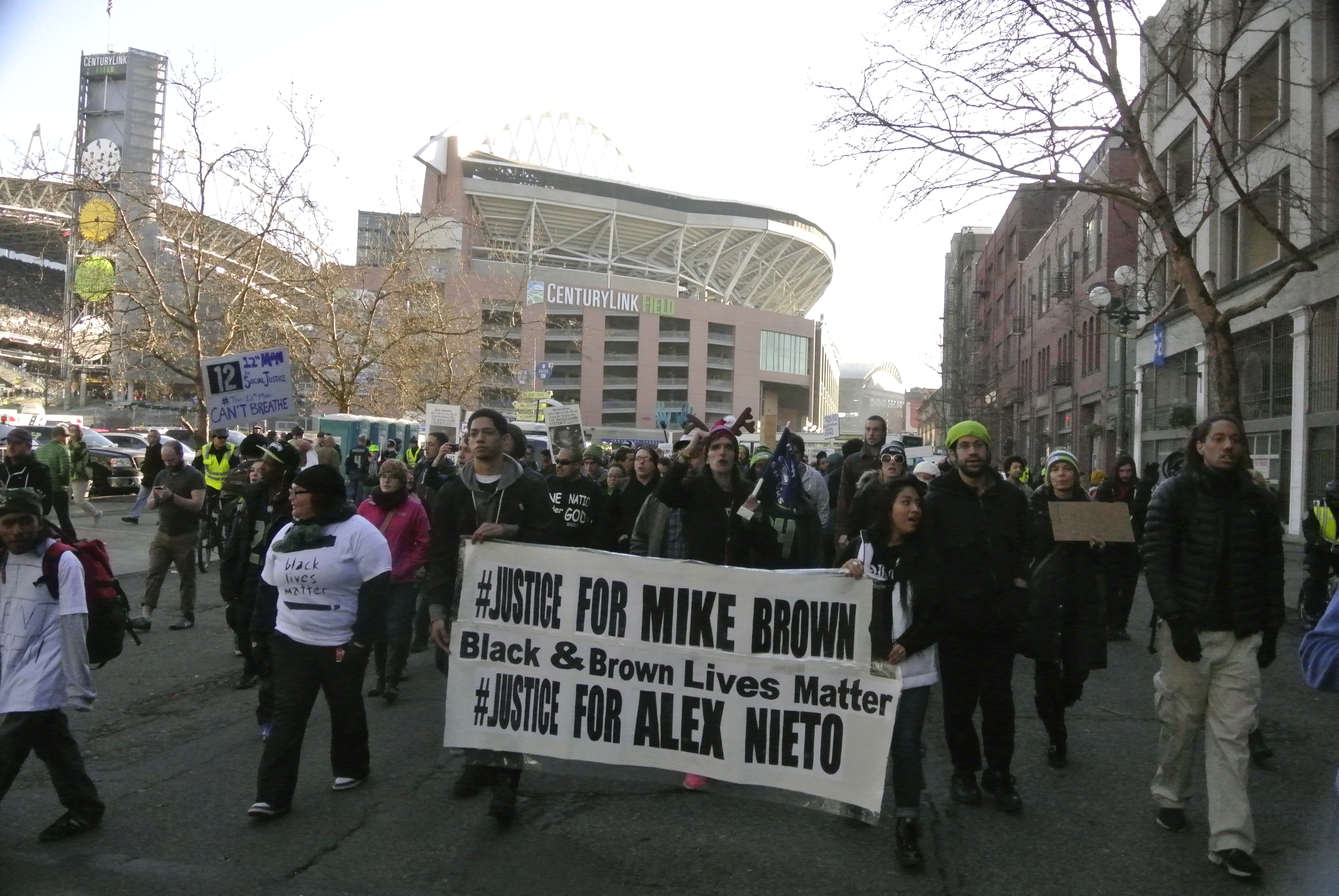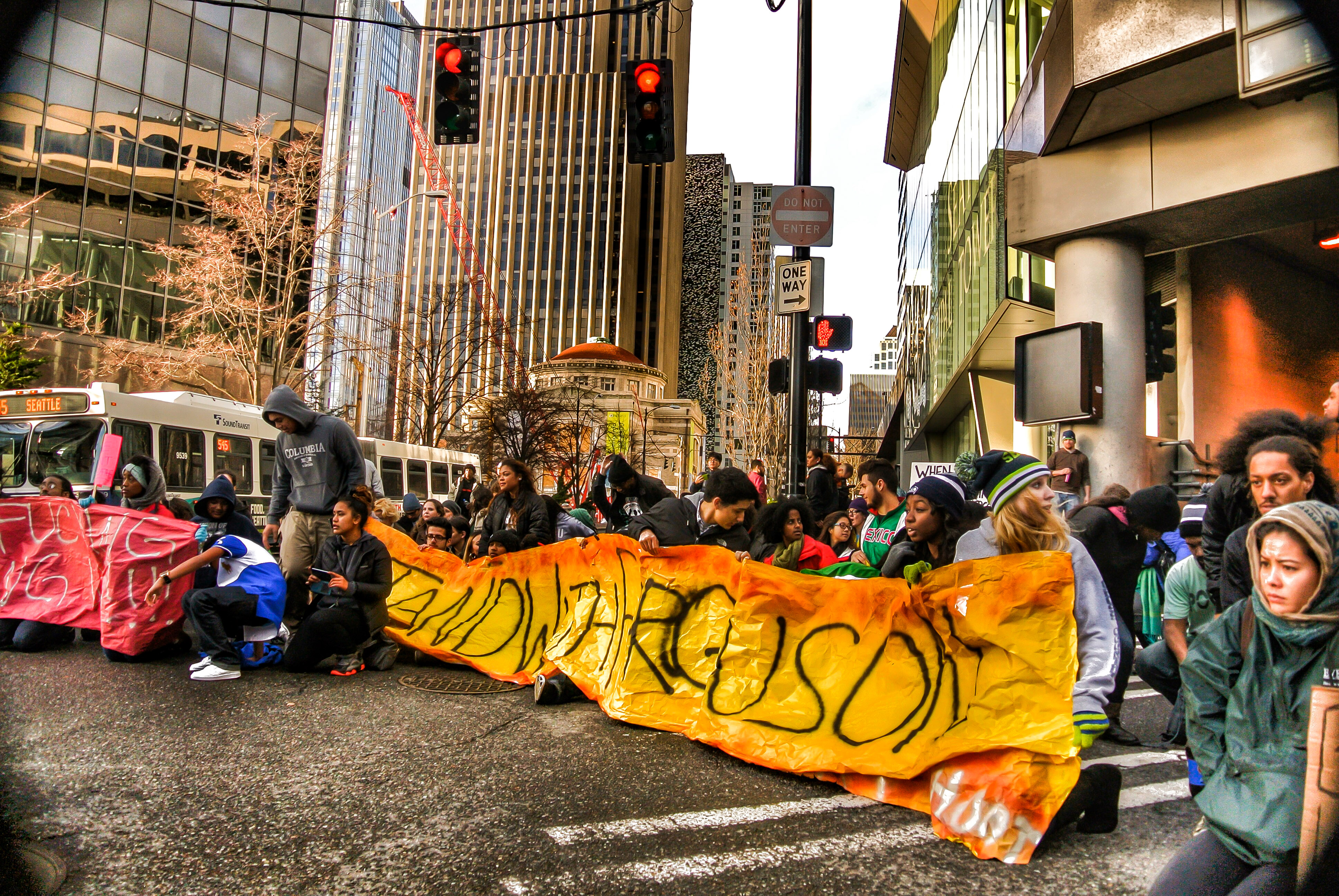 Courageous people have been organizing and putting their very lives on the line and making the utmost sacrifices to demand our right to life and for justice. People have made sacrifices of school and work, of safety and life to demand justice and to fight for an equitable system, but to read the comments on many news or reporting feeds or to listen to the people outside of the marches critiquing the protesters’ motives say things like this comment from a KIRO 7 news feed Protest Planned at Pioneer Square During Seahawks Game (12/19/2014): “How many of these not so intelligent protesters are feeding of our tax dollars. They seem to have a lot of time on their hands to protest. But not enough to check there facts. It’s time for them to shut up and get a job!” To listen to and absorb these types of comments, whether in public, on television, the radio, or on the internet one might think that the people in these demonstrations had nothing to lose because we never had anything.